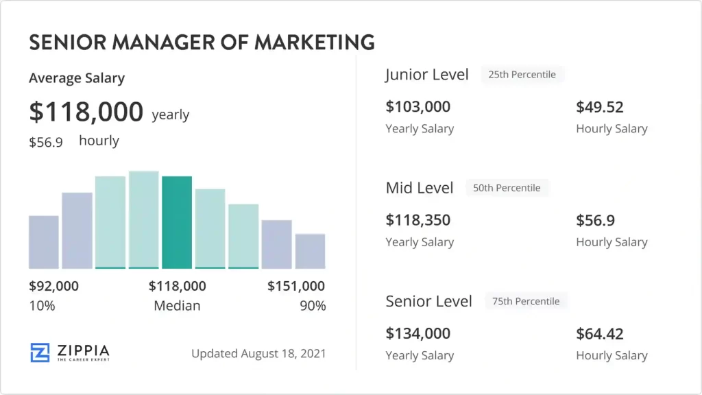 - Senior-Level: Marketing managers with over 8 years of experience often earn $100,000 or more.